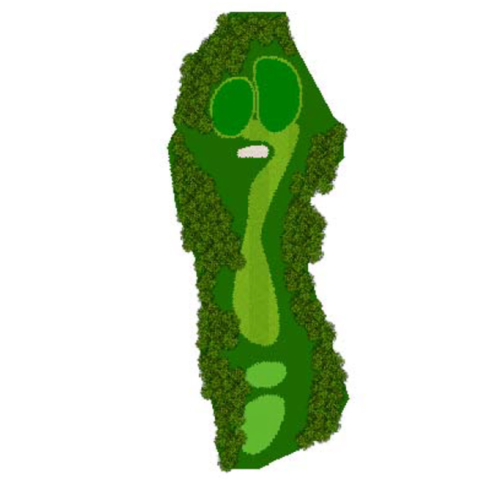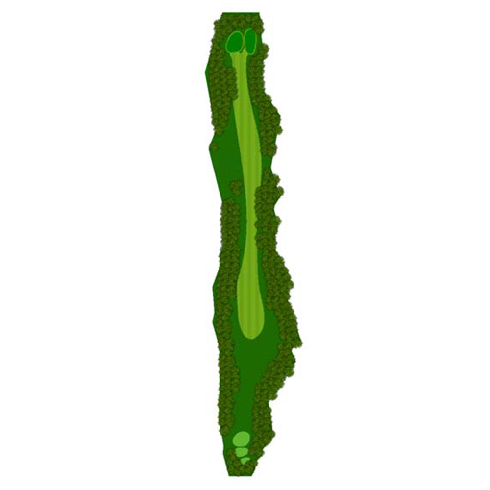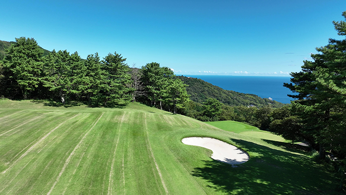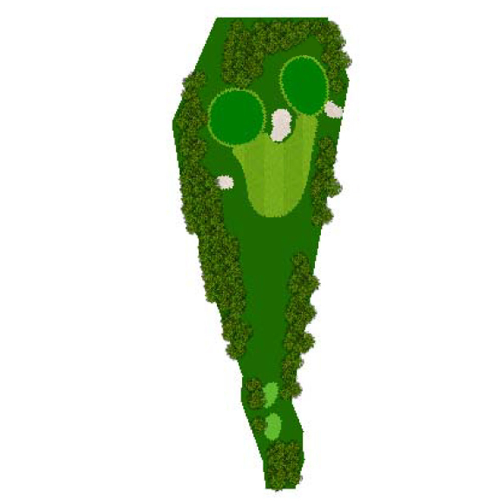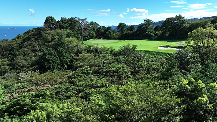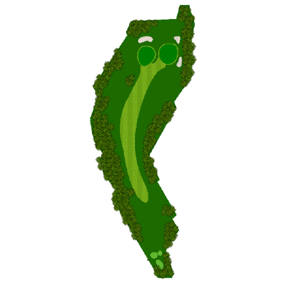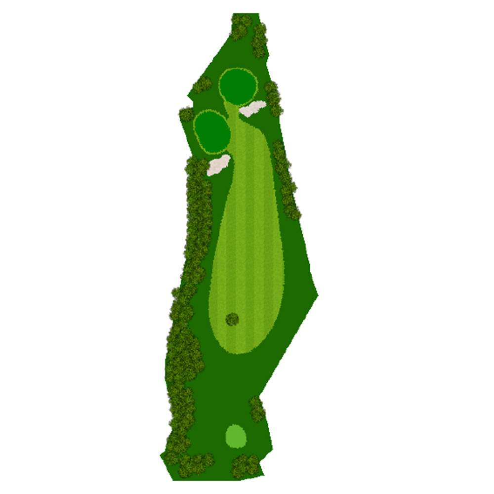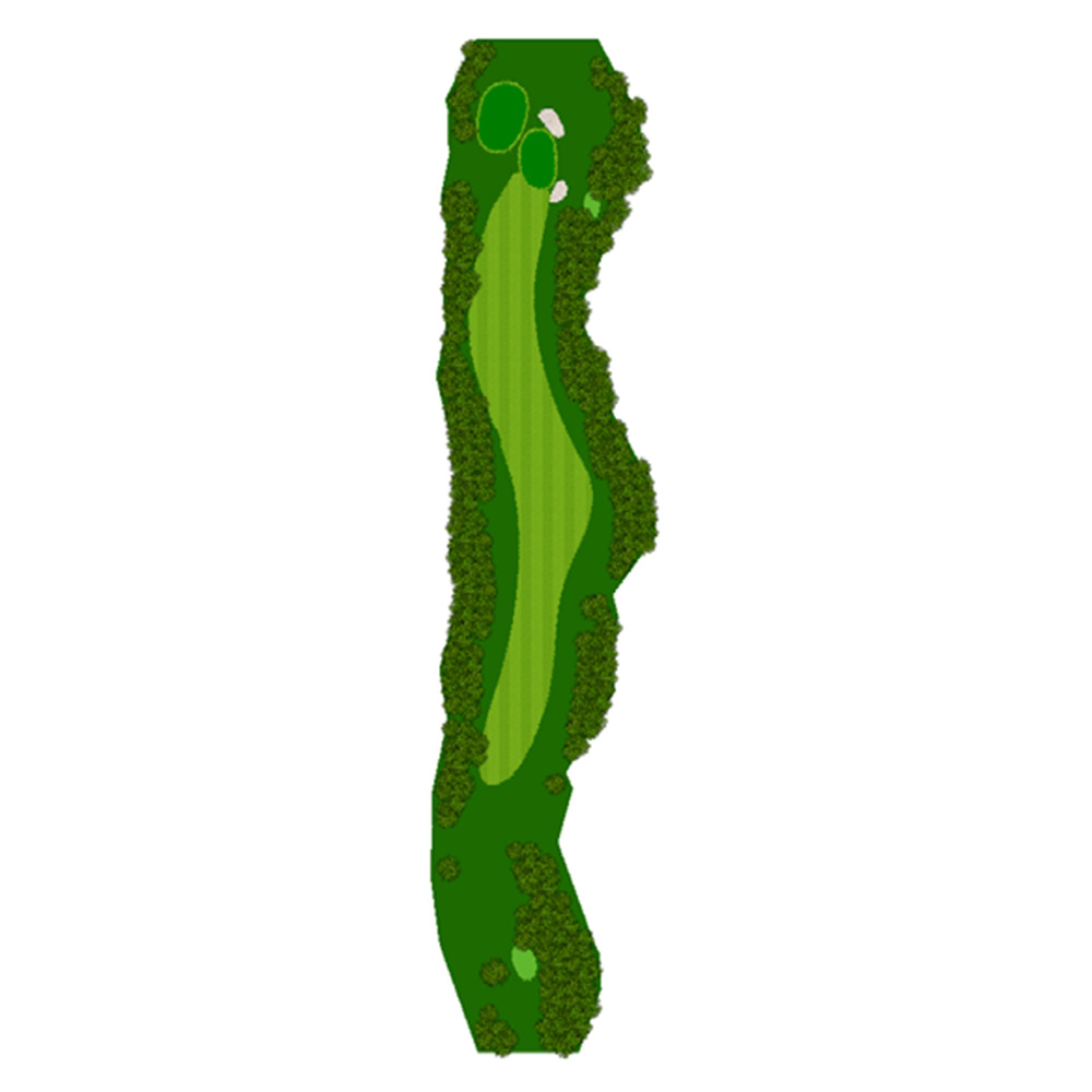 谷越えのショートホールでコース全体が右から左へ傾斜しているため正確なティーショットが要求される。