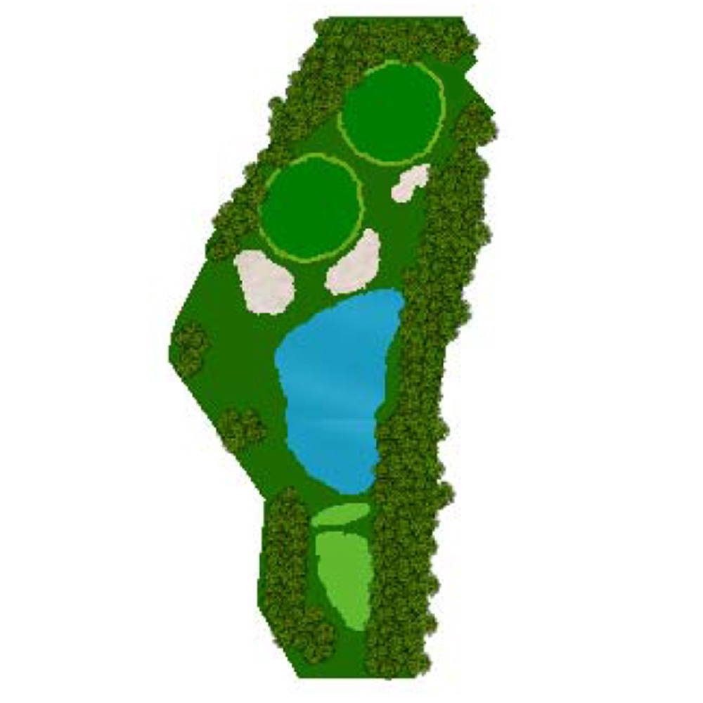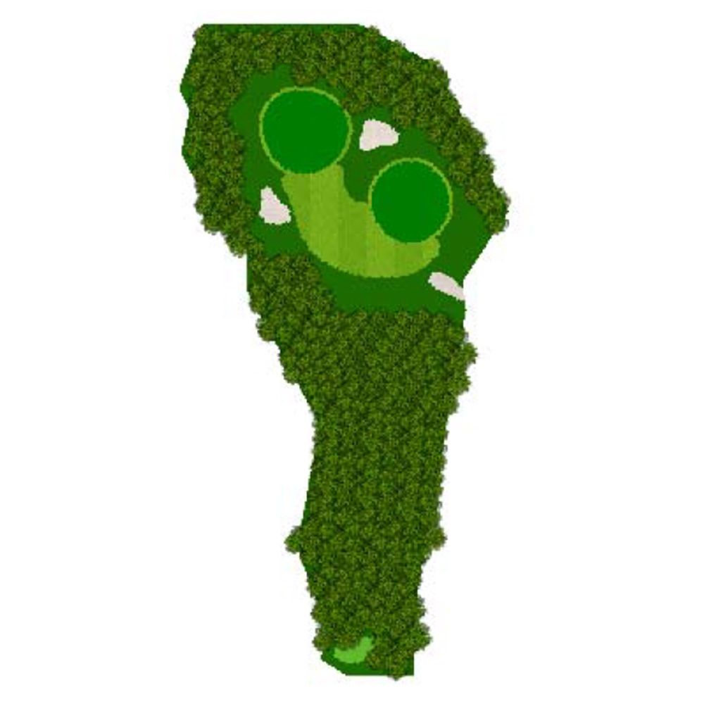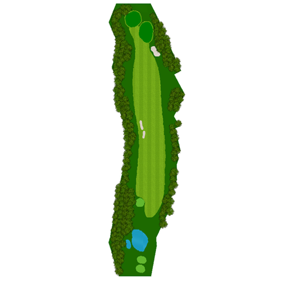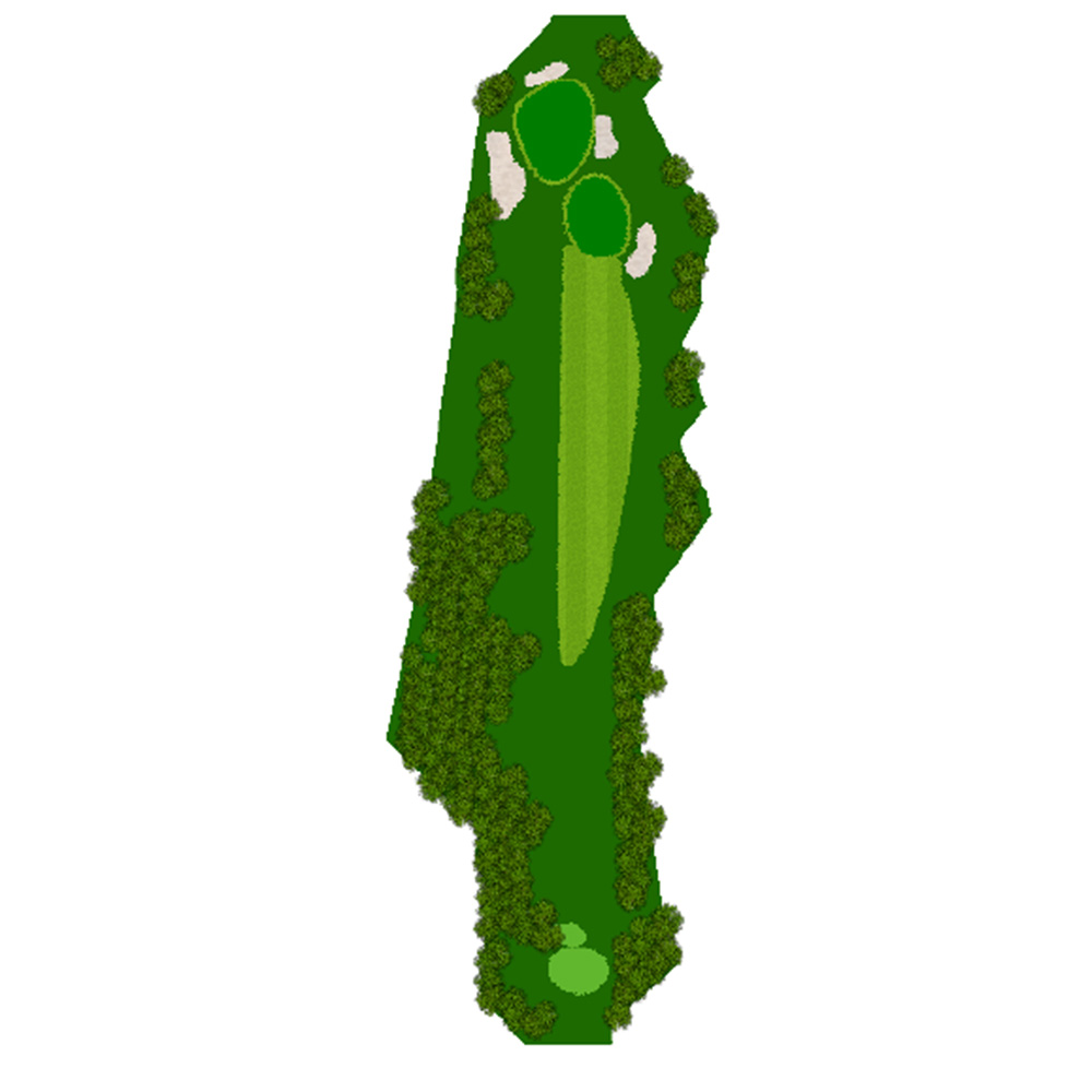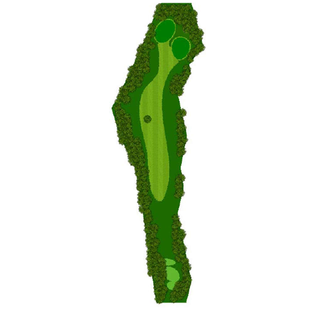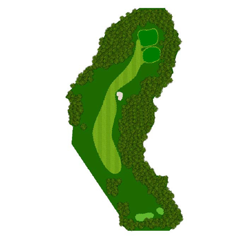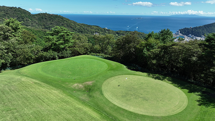 谷越えのショートホールでコース全体が右から左へ傾斜しているため正確なティーショットが要求される。