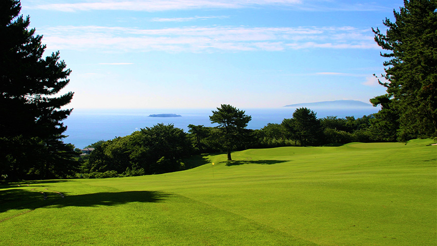 クラブハウスに向かって打ち下ろしのミドルホール。