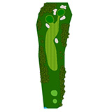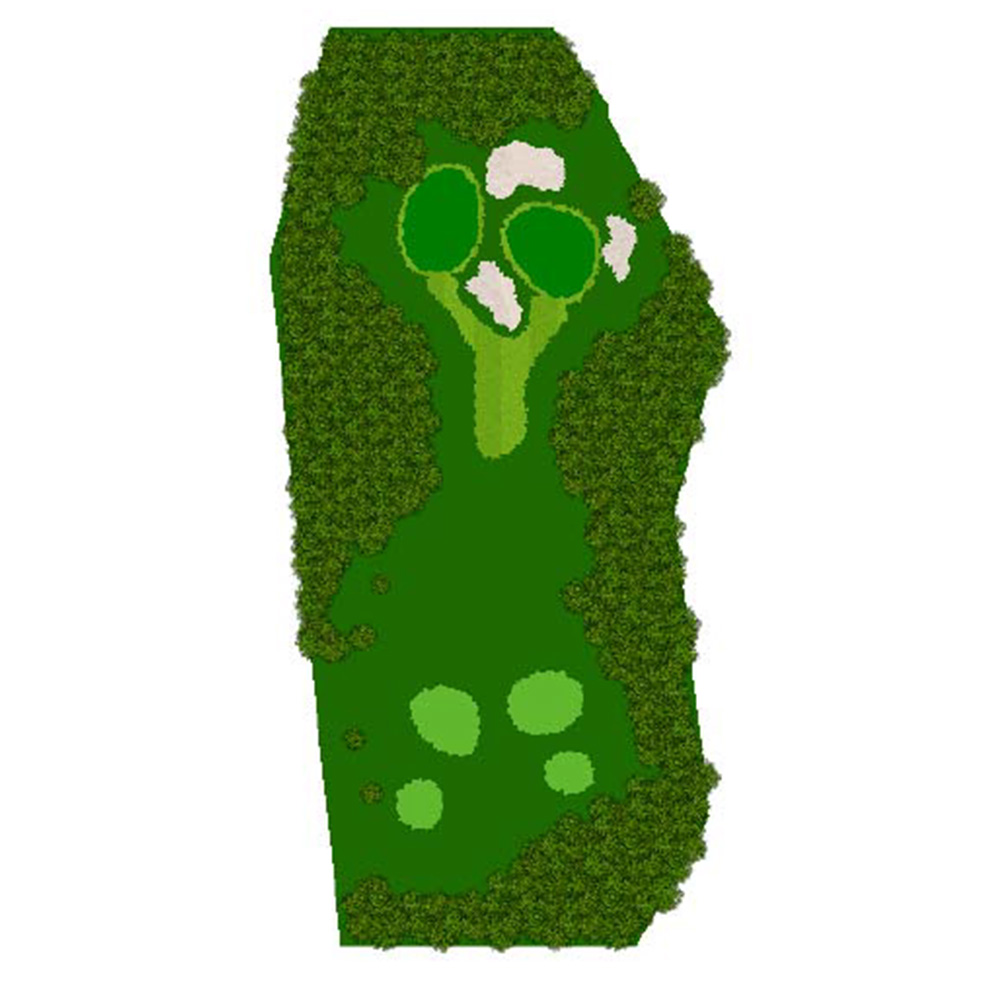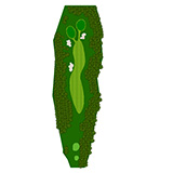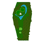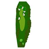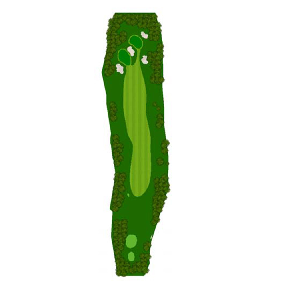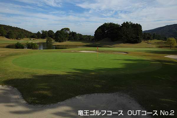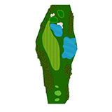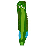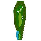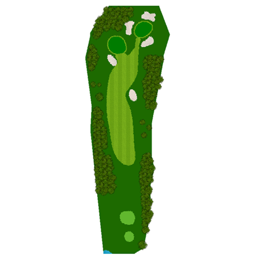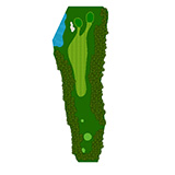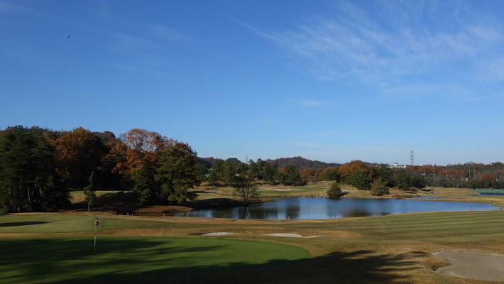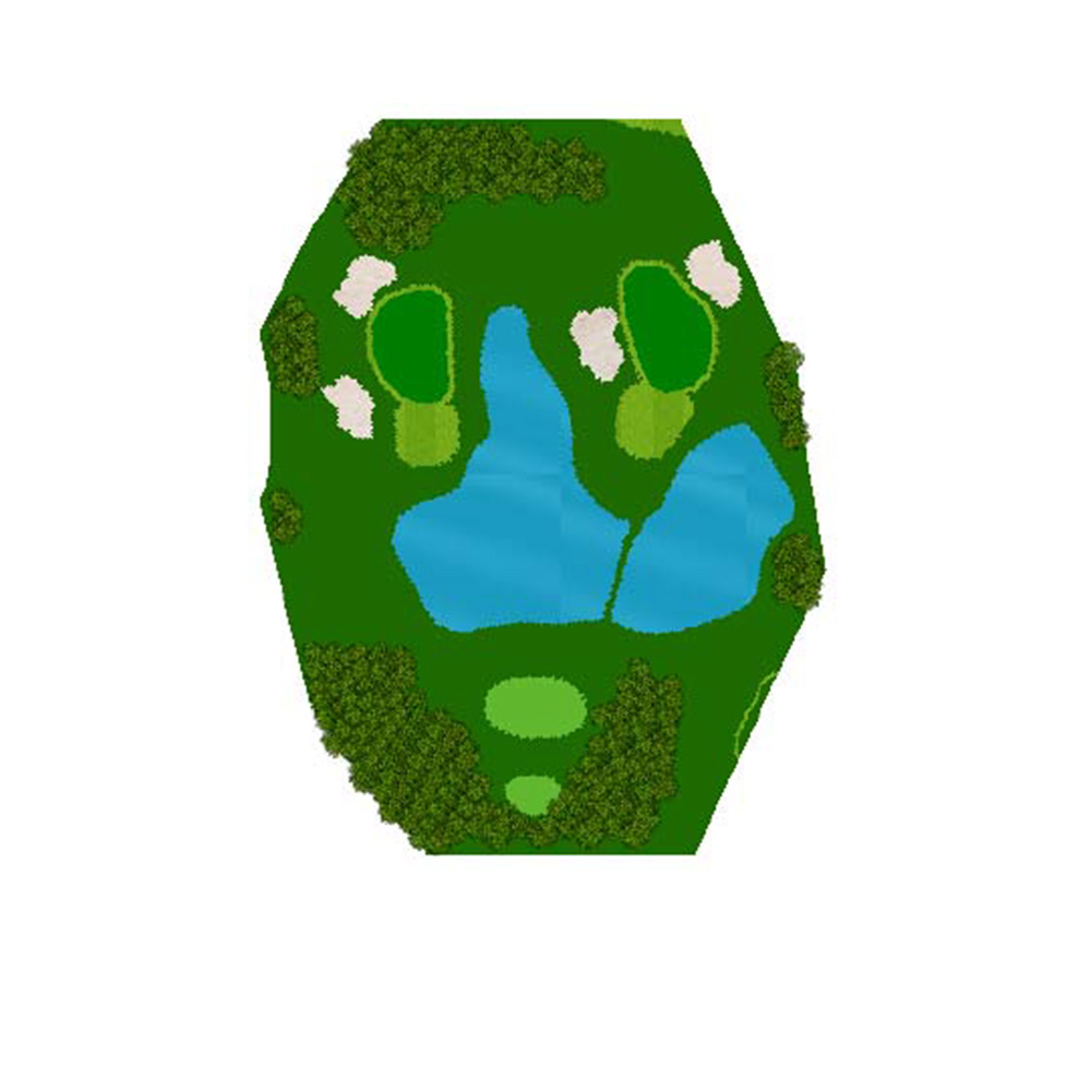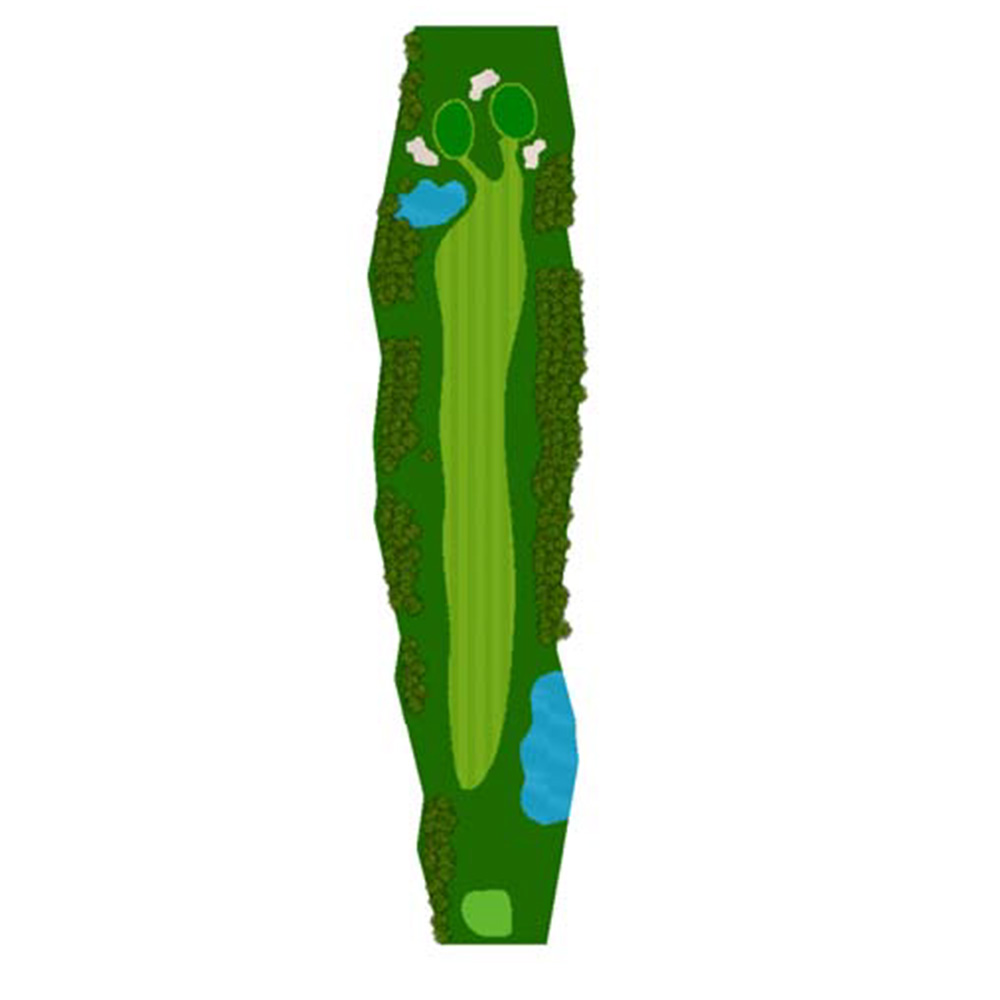 池に囲まれたゆるやかな右ドッグレッグのホールです。
