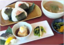 (梅おにぎり・ごま昆布おにぎり・お新香・豚汁付き)
