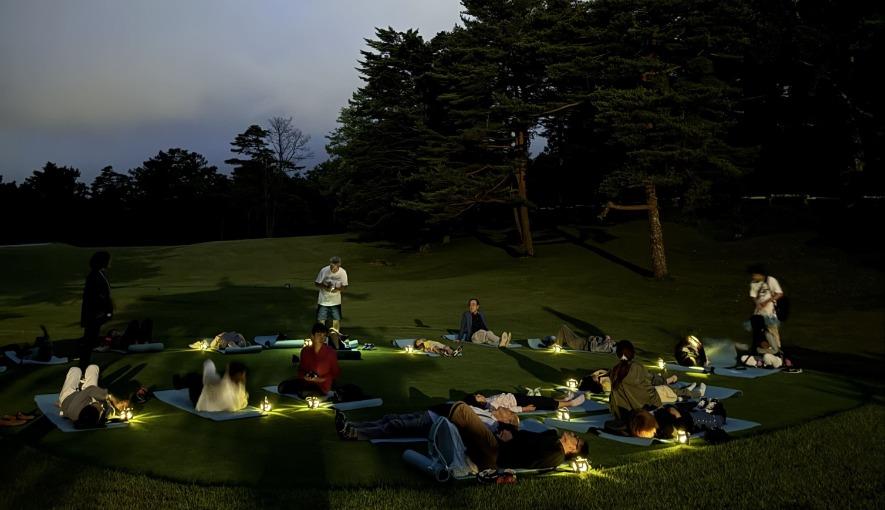 * ゴルフ場の芝生の上で、マットに寝転んで星のおねえさん®との星空観賞