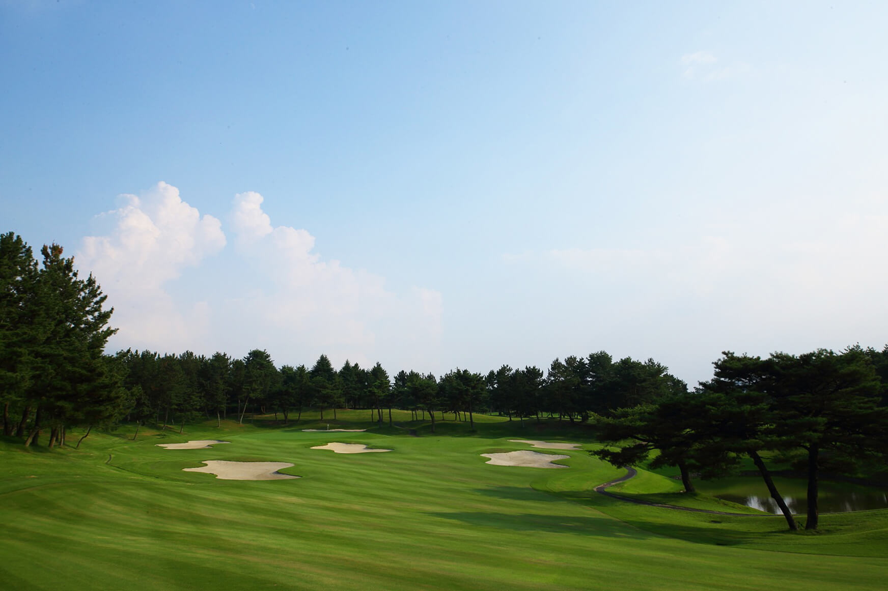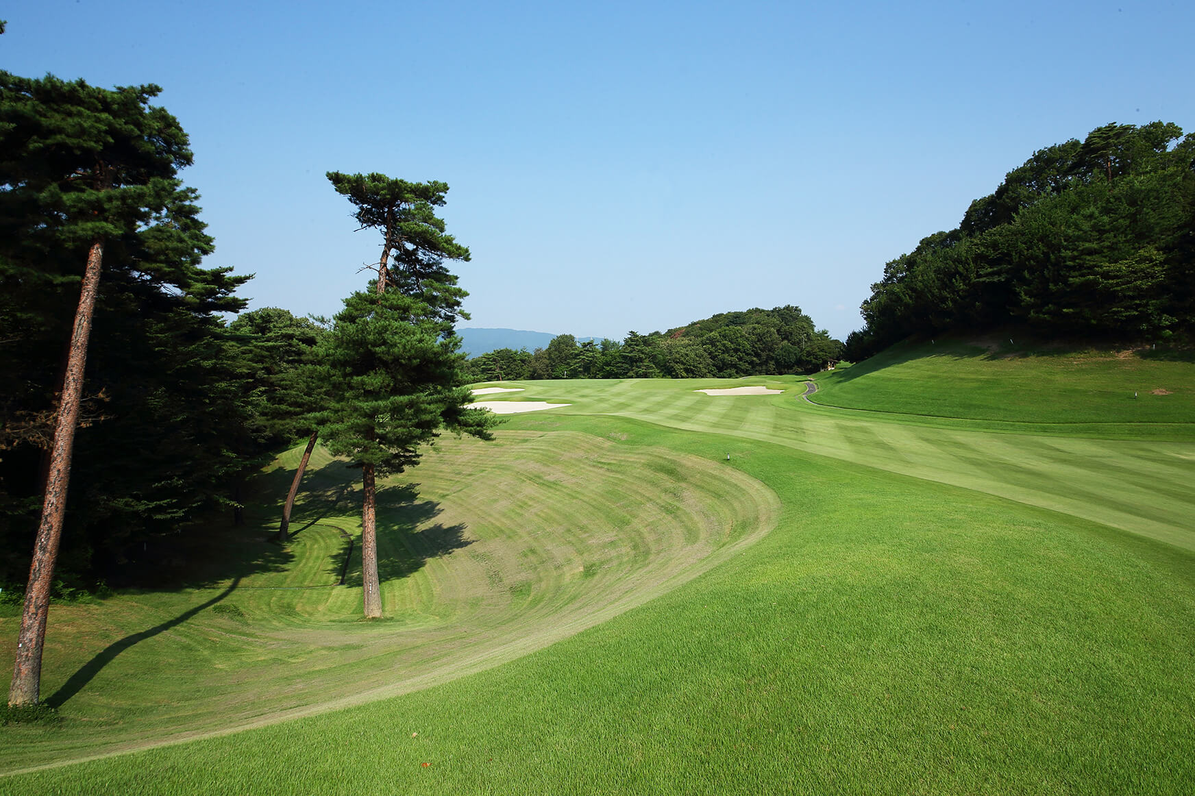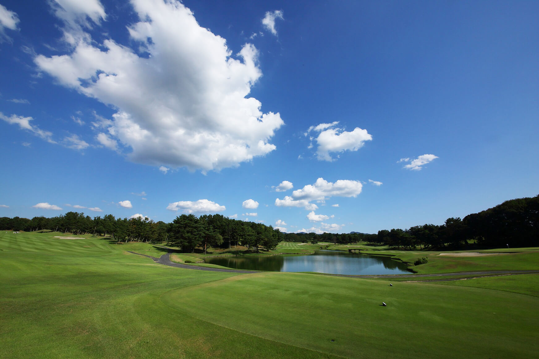 適度なアンジュレーションをもつ丘陵地帯に位置し、コースには歴史を感じさせる風情のある松や楠、樫が繁ります。フェアウェーは広く、爽快なドライバーショットが楽しめますが、一筋縄ではいかないのが名匠・井上誠一ならでは。4ホールにまたがる池や、効果的に配されたブッシュ、バンカーが、好スコアを目指すゴルファーの前に立ちはだかります。