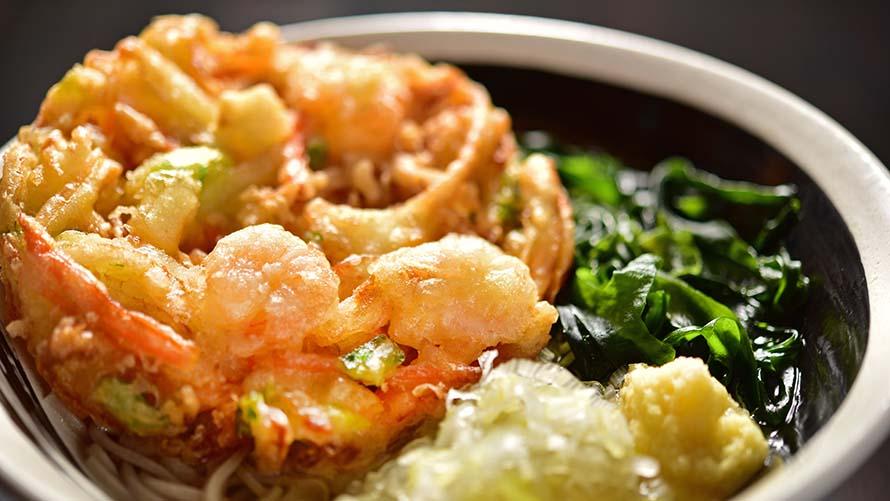 自慢の「しょうがそば」は、心も体も温まる一品として、多くのお客様にご好評をいただいております。エネルギー補給や気分転換にぜひお立ち寄りください。しょうがそばにかき揚げをトッピングしたかき揚げそばもおすすめです。