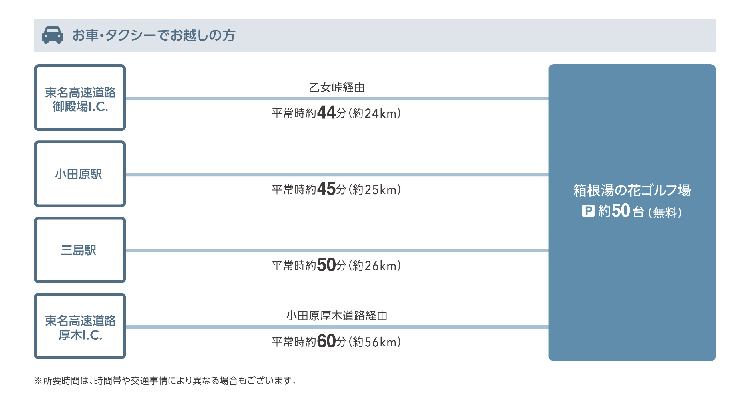 [ゴルフ場からのアクセス:車で平常時12分]