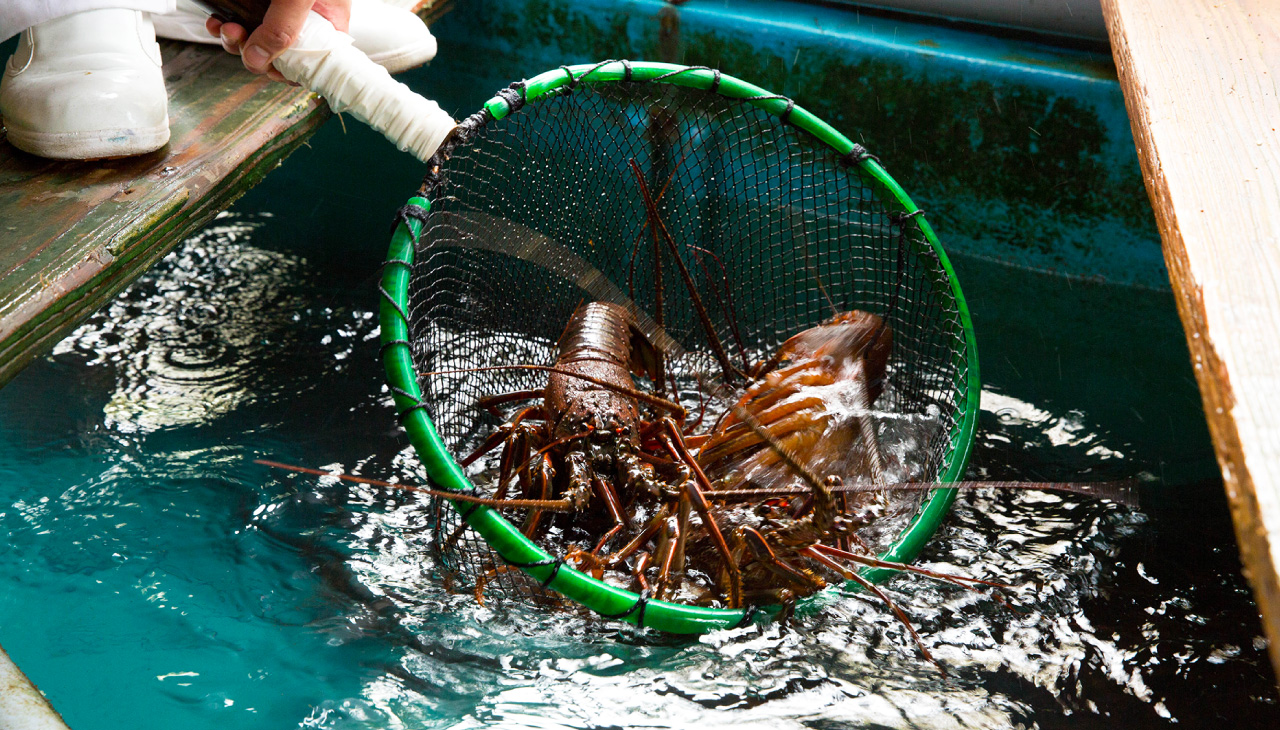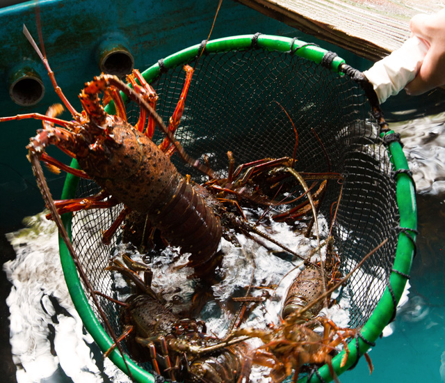 環境の変化に敏感な伊勢海老専用の生けすを有し、