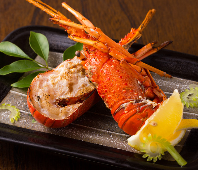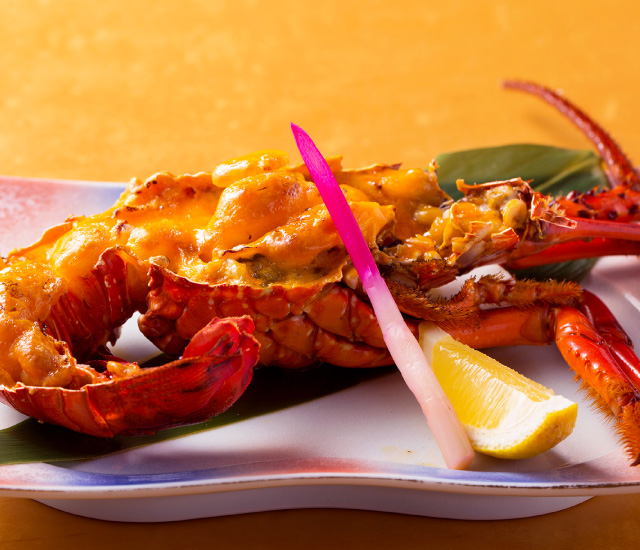 半割りにした伊勢海老をじっくり焼いた「伊勢海老焼き」。