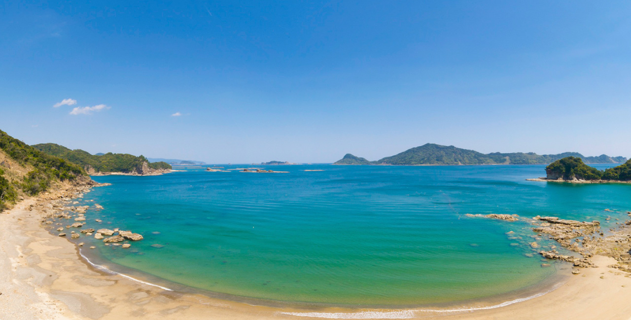 眼前に広がるのは、白い砂浜と翡翠色の海──