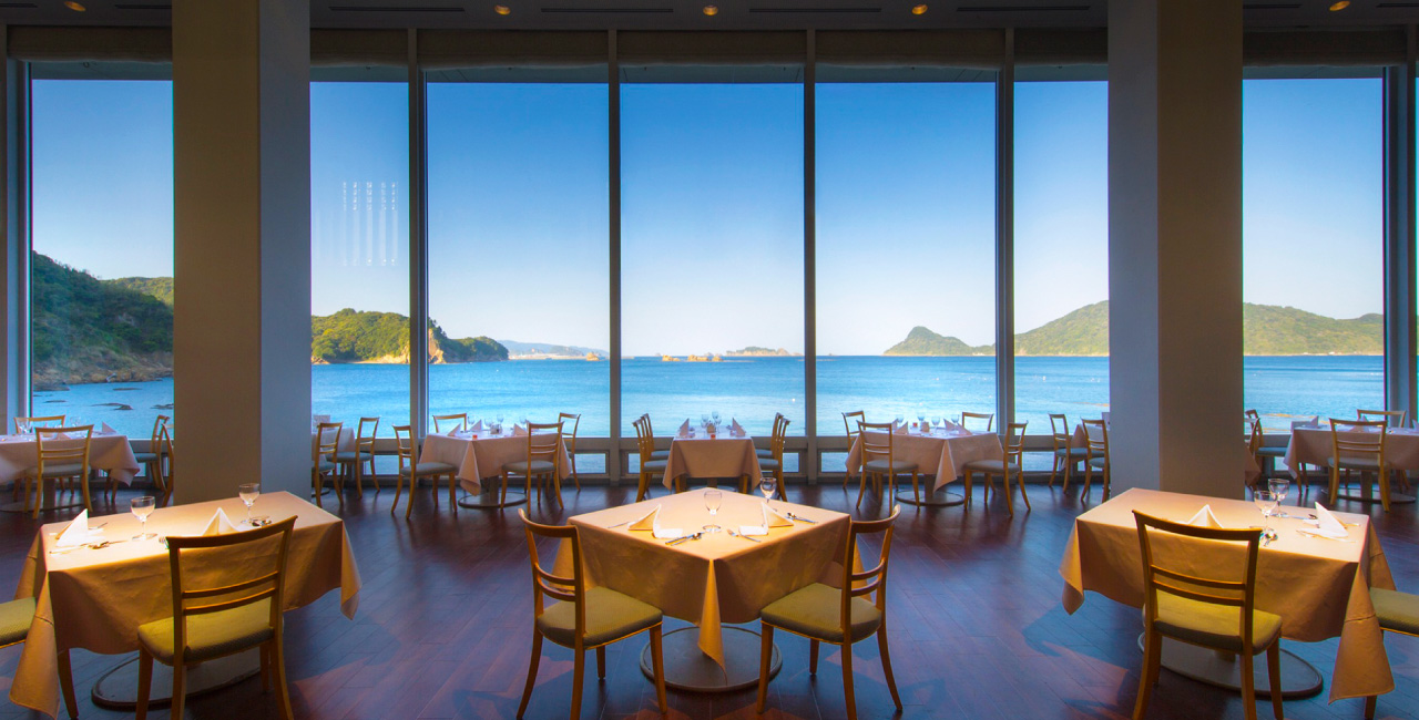 「日南海岸 南郷プリンスホテル」の絶景ダイニングで。