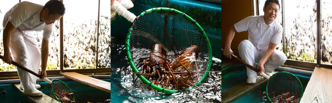 伊勢海老は活き造りか湯がき、塩焼きかを選べます。