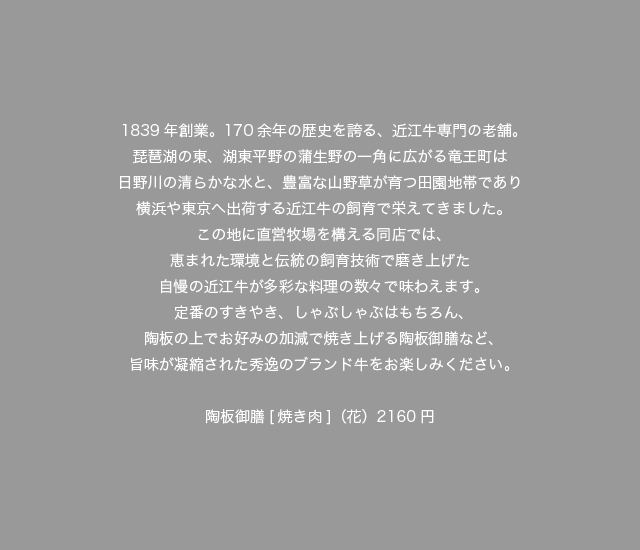 営業時間 平日11:30A.M.~L.O.2:00P.M. / 5:30P.M.~L.O.8:30P.M.