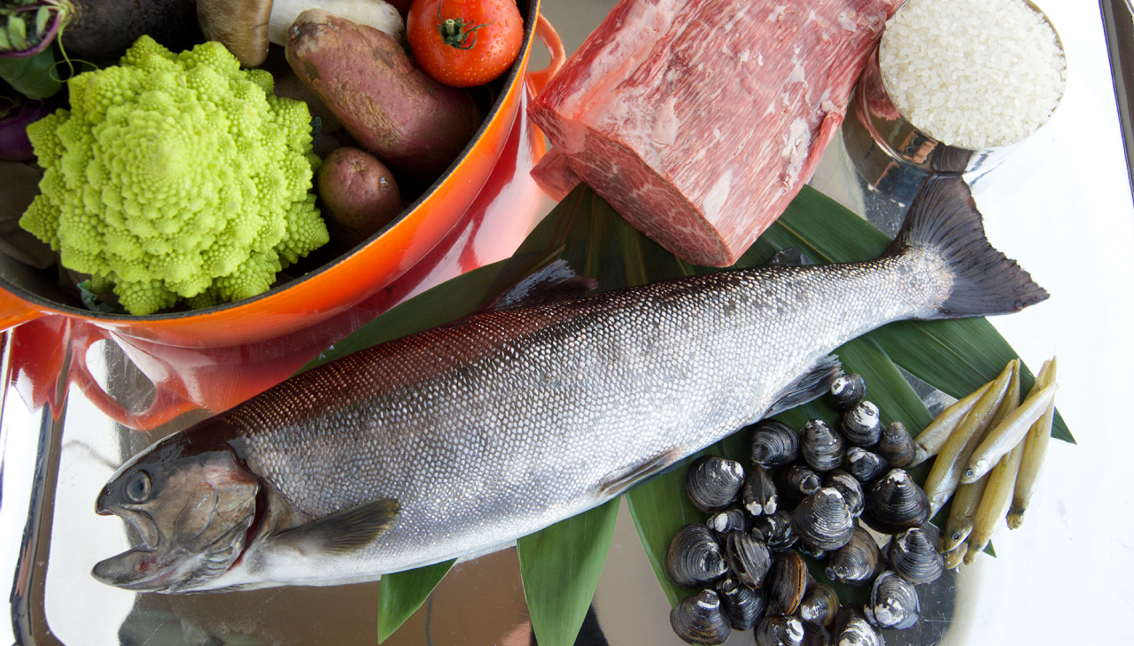 霜降り度合が高い近江牛に、琵琶湖産のしじみにわかさぎ。