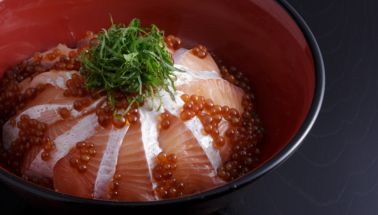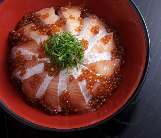 びわますの刺身に同じくびわますの卵のしょうゆ漬けを