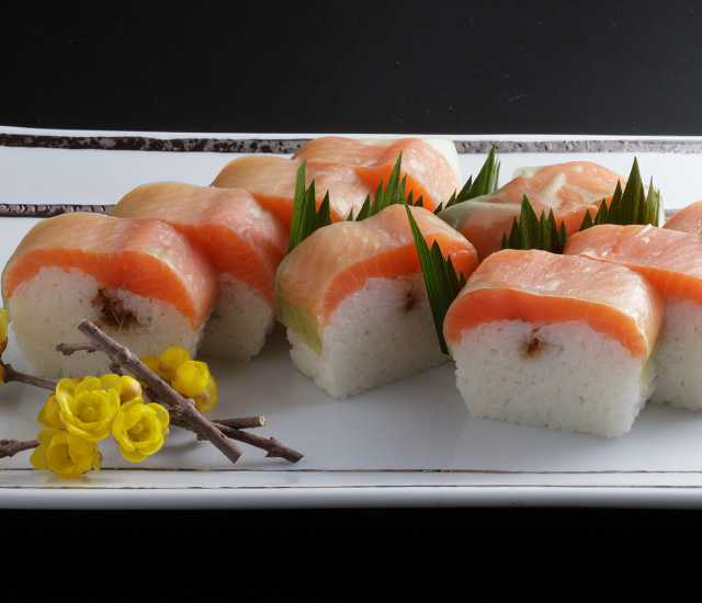 ぜひ堪能すべきは、びわますを使った棒寿し。