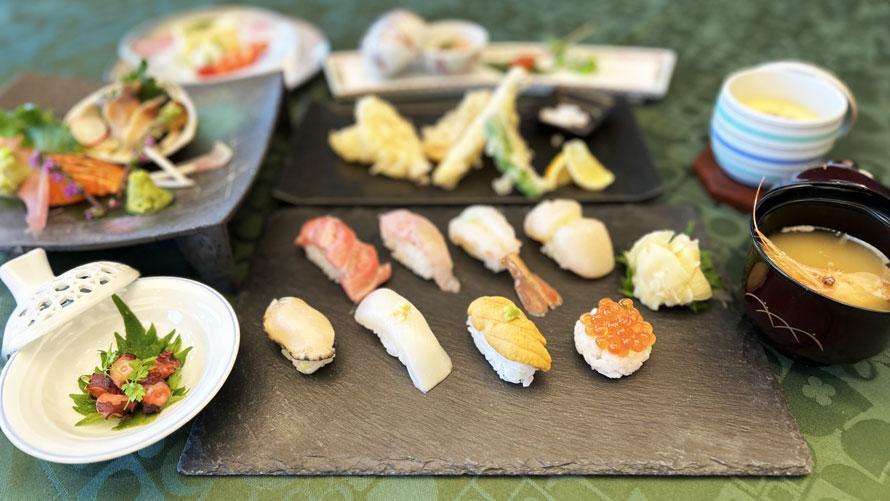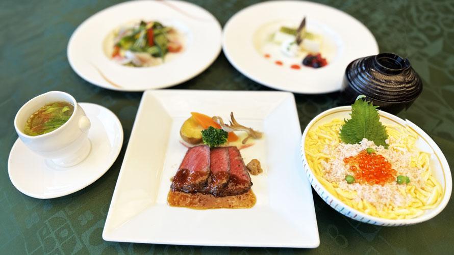 壁一面の窓からは優雅な大沼の四季が楽しめ、シェフがセレクトした海の幸、山の幸を使ったディナーコース、アラカルト料理をソムリエがワインや日本酒などのマリアージュで心ゆくまでご堪能いただける美食空間シーンを心地よく演出いたします。