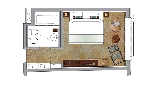 函館大沼に夏の湖面に彩を添える白い花「睡蓮」をカーペットにあしらい、よりハイグレートなアメニティ、空間を演出いたします。※べッドはハリウッドツインタイプとなっております。