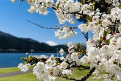 4月初旬よりしだれ桜が咲き始め、ソメイヨシノやマメザクラ、箱根園にある樹齢100年の湖畔の一本桜「大島桜」は4月中旬から下旬にかけて見頃を迎えます。