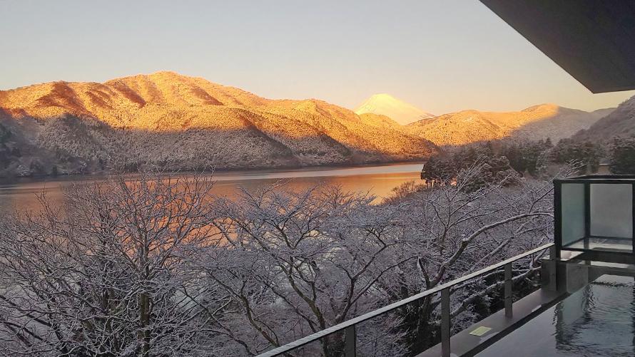 冬の箱根は駒ケ岳ロープウェーからの絶景や、箱根神社、箱根九頭龍神社などのパワースポット、ほっこり温泉に浸かりながら雪化粧した山々の遠くには富士山を眺められ、冬の箱根ならではの光景を楽しむことができます。