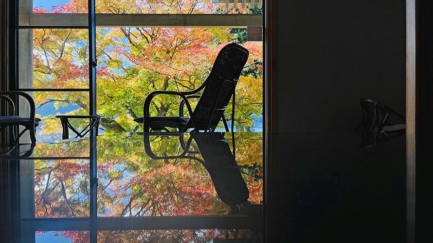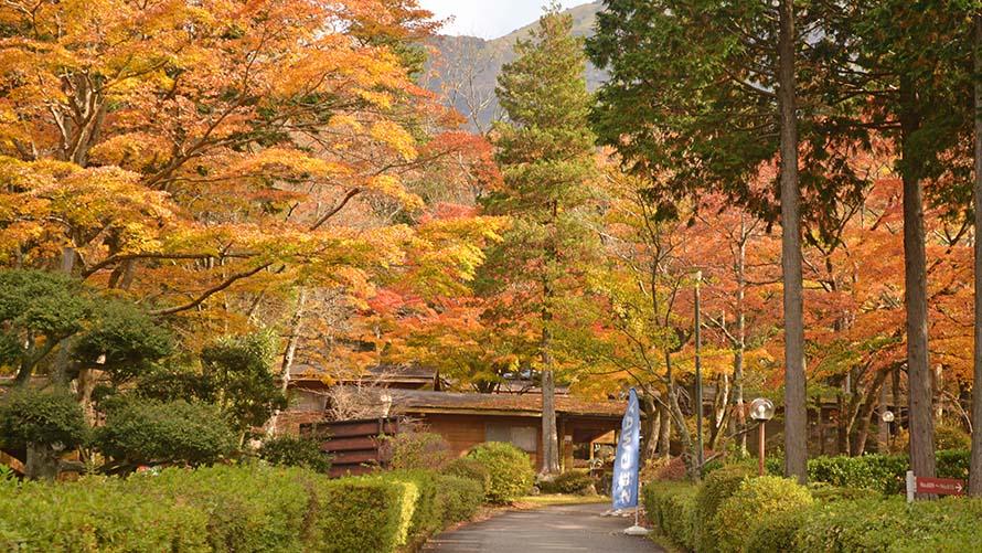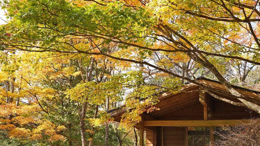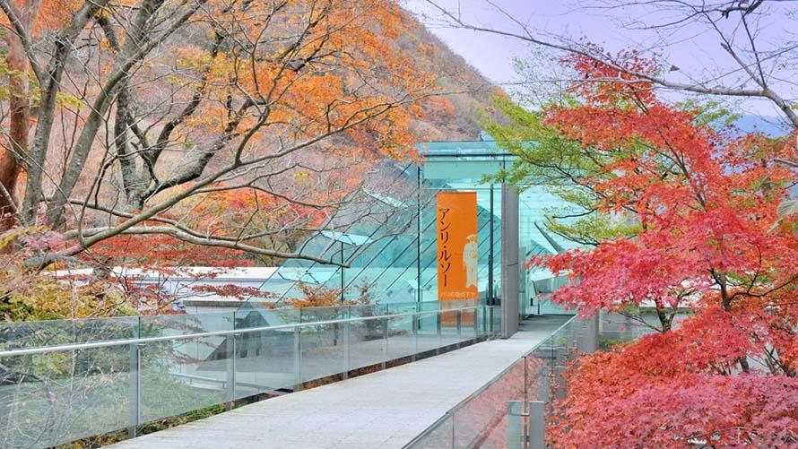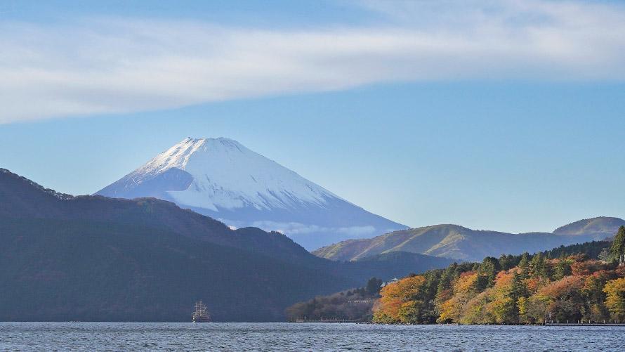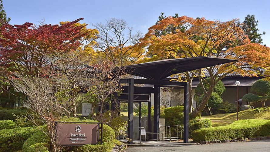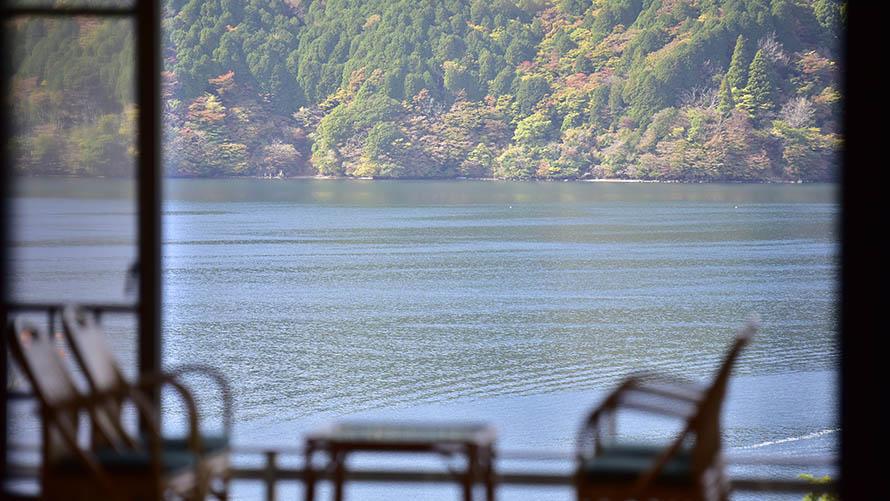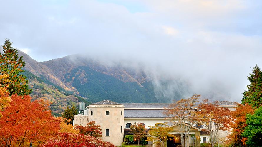 秋色に染まる駒ヶ岳をバックに、曲線が特徴的な建物…中庭はもちろん、モーターボードに乗り芦ノ湖から景色を楽しむのもおすすめです♪
