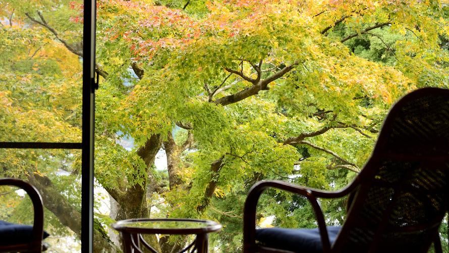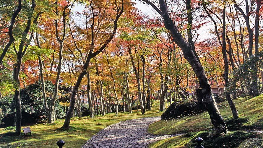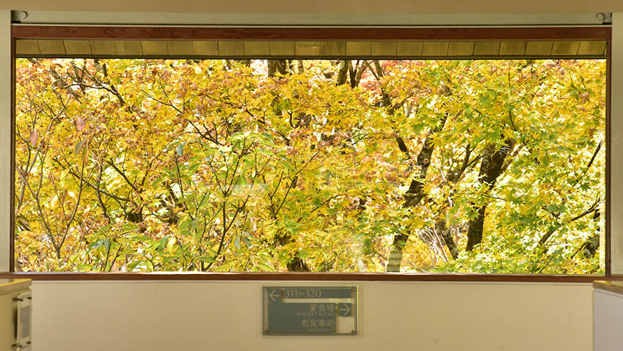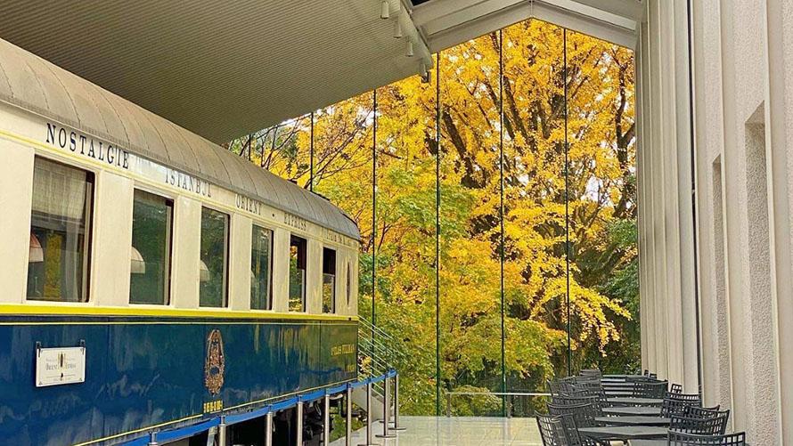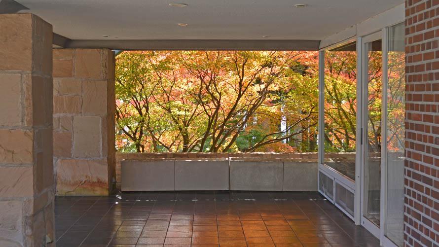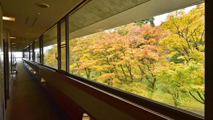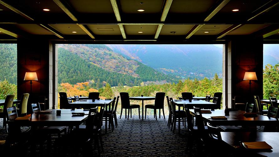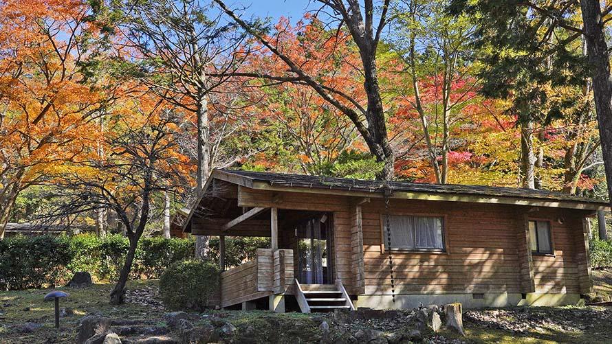 秋色に染まる駒ヶ岳をバックに、曲線が特徴的な建物…中庭はもちろん、モーターボードに乗り芦ノ湖から景色を楽しむのもおすすめです♪