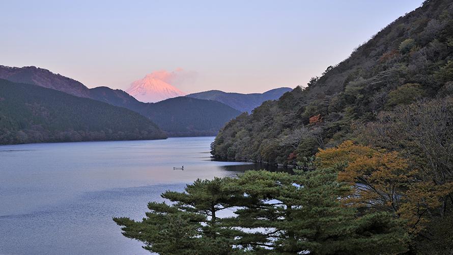 『自然との境界線を限りなく曖昧にしたい』という建築家 村野藤吾氏の思いから設計されたザ・プリンス 箱根芦ノ湖。湖上からは建築物が景色に溶け込む美しさが見られます。