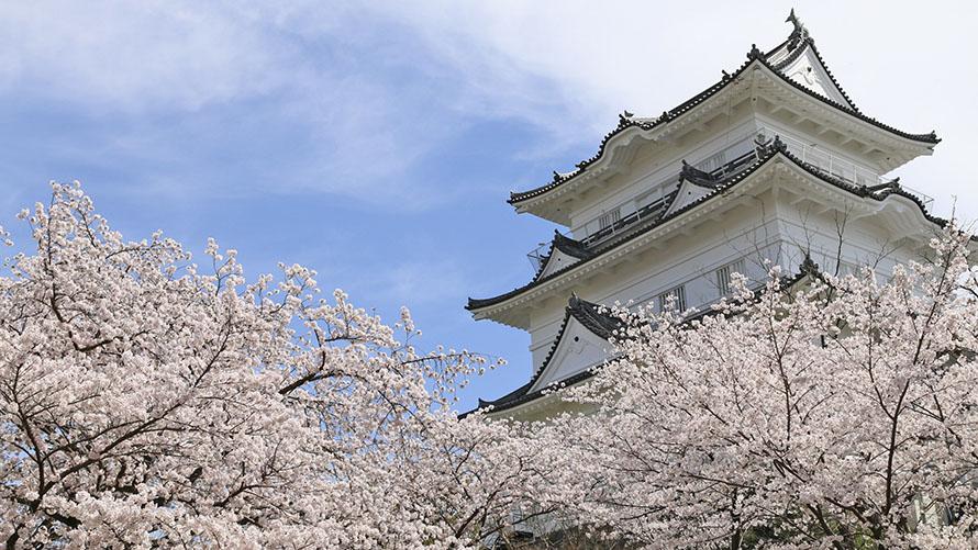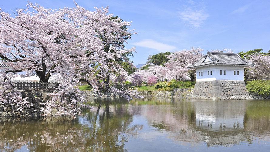 箱根の玄関口-小田原の名所、難攻不落の城と謳われている小田原城は、大森頼春より築城され、その後北条氏の拡張により戦国最大の城にまで発展しました。ここは桜の名所としても知られ、全国「さくらの名所100選の地」にも選ばれました。お城の白亜を引き立たせようと咲き誇る淡いピンク色の桜や、お堀に映る城壁と一面に広がる桜の様子はまさに絶景です。