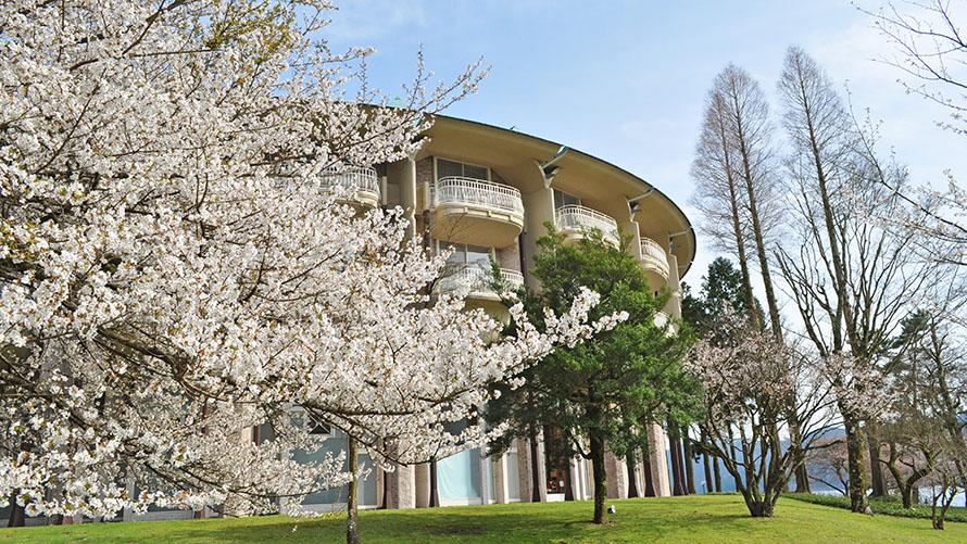 箱根の山々に溶け込むように建てられたザ・プリンス 箱根芦ノ湖。春になると、玄関ではシャクナゲが出迎え、湖畔の庭に行けば桜が誘うようにそよ風に揺れる姿につい見とれてしまいます。咲き誇る薄ピンク色の桜と富士山・芦ノ湖のコラボレーションは、この時期にぜひ見てほしい景色です。