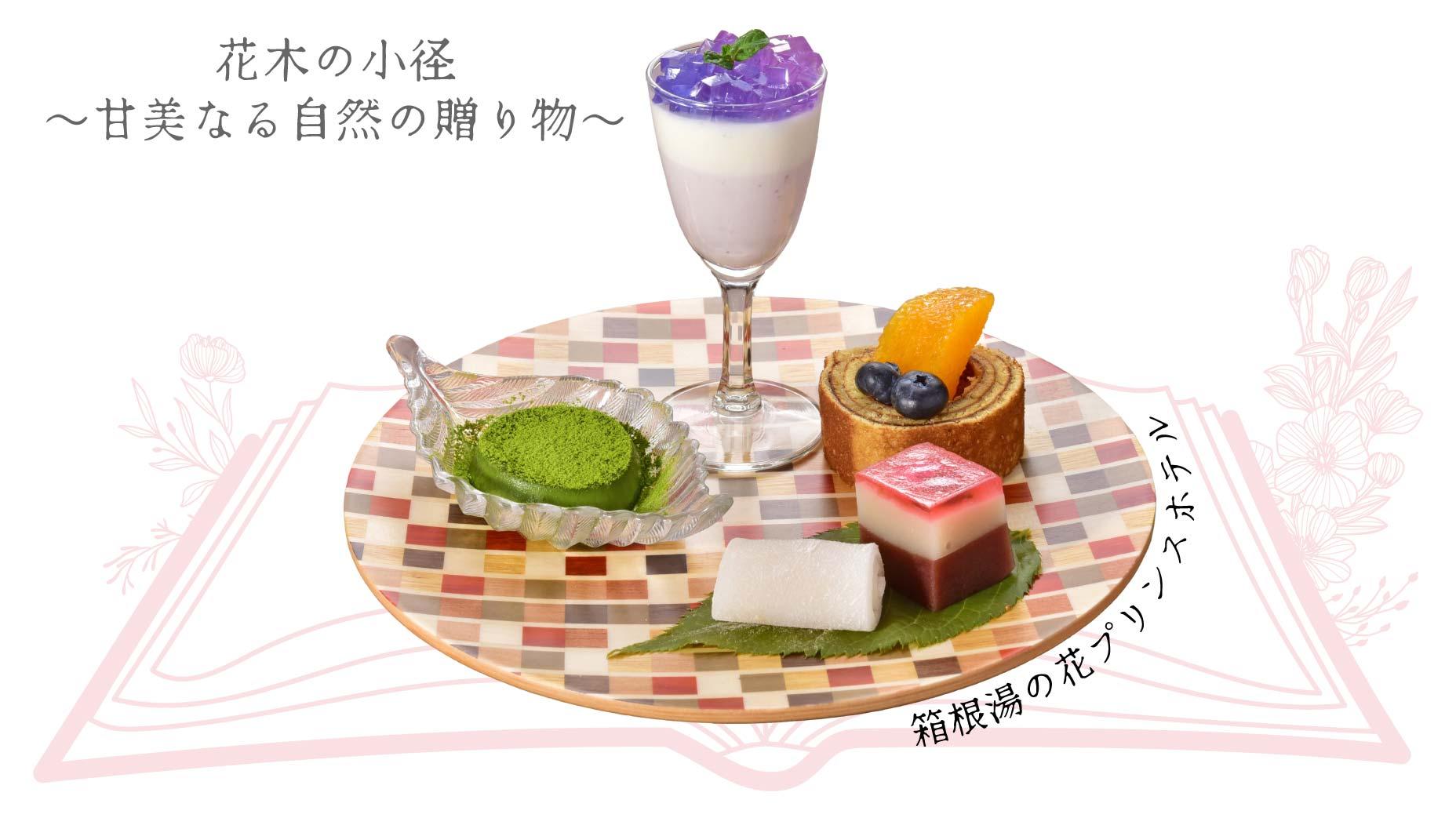 芦ノ湖・仙石原・湯の花の各エリアにある4つのプリンスホテルで、箱根の豊かな自然や箱根寄木細工から着想を得たスイーツを、特製の寄木皿にのせてご提供します。