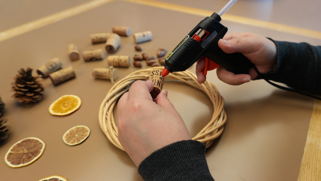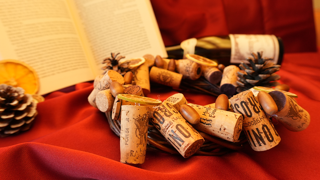 レストランでワインをお楽しみいただいたあとのコルクを再利用し、作っていただくクリスマスリース作り体験。本来であれば捨てられてしまう小さな素材にもう一度命を吹き込み、あなただけのクリスマスリースを作りませんか?