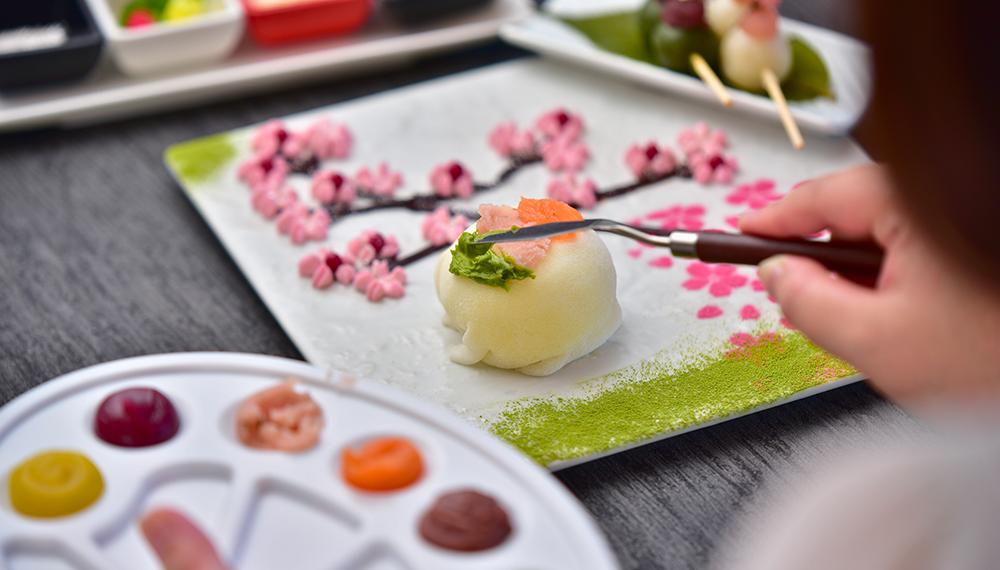 洋食シェフとパティシエが考案した洋風の大福に、地域食材を取り入れた色とりどりのあんクリームやトッピングでデコレーションして、世界に一つだけの食べられる芸術作品を作ってみませんか?またスイーツと一緒に、テーブルでカジュアルに抹茶をいれていただける「モダン茶道体験」もお楽しみいただけます。箱根仙石原の春を“食×アート”でぜひお楽しみください。