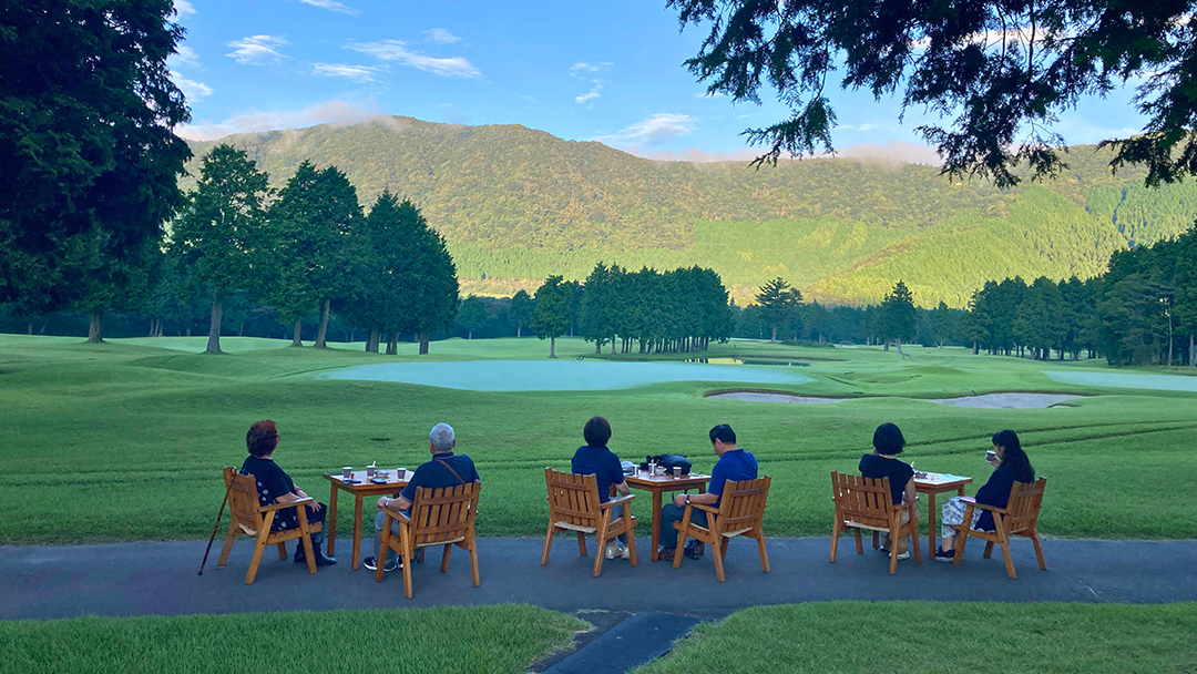 1日の始まりに壮大なゴルフ場の朝のすがすがしい空気を感じながら、野鳥のさえずりをBGMにゆったりとリフレッシュするお散歩タイムをお過ごしください。お散歩の途中には、箱根外輪山の絶景を望みながら挽きたてコーヒーもお楽しみいただけます。
