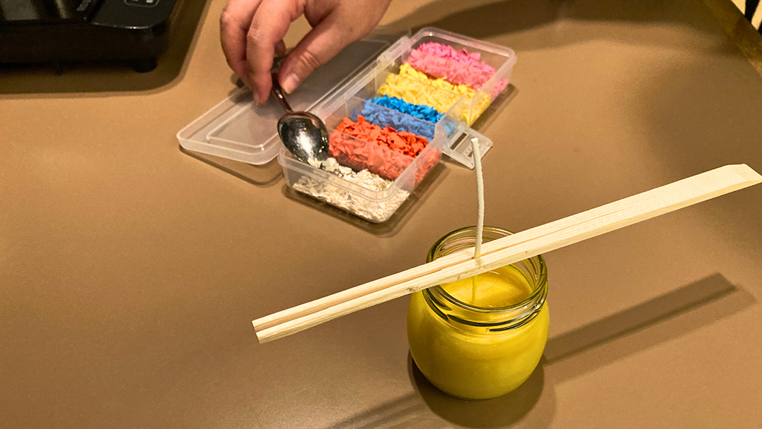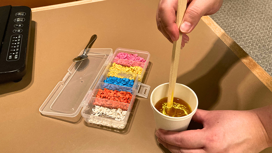 ホテルで廃棄されるはずの食用油を再利用し、オリジナルキャンドルを作っていただく体験。お好きな色や香りであなただけのキャンドルを作ってSDGsに貢献しませんか?ホテルロビーで飾られていた花をドライフラワーにし、デコレーション素材としてご用意いたします。
