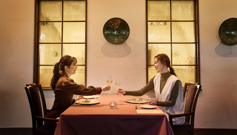 当ホテルのメインダイニングルーム「プラ デュ ジュール」では、五感を刺激するフレンチをコンセプトに見た目も楽しく、香り豊かにじっくりと味わえるディナーをご用意。地産の食材をふんだんに使用し、エシカルな構成に拘った料理長の個性が光るシグネチャーメニュー「ヴォヤージュ」がおすすめ。地域と調和する美食とワインの調べをお楽しみください。