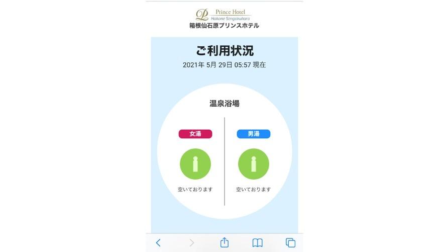 リアルタイムで温泉浴場の混雑状況を確認いただけるようになりました。