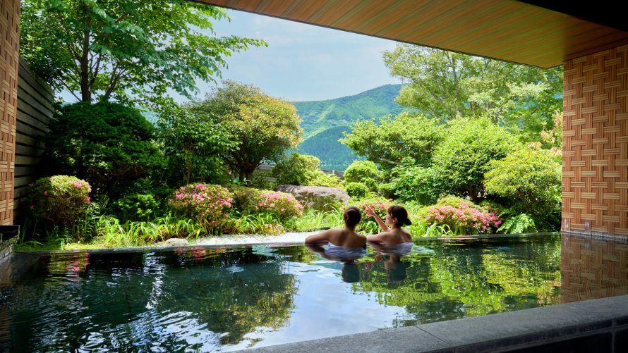 温泉露天風呂からは、雄大な箱根外輪山が眺められ、ゆったりとした時間をお楽しみいただけます。