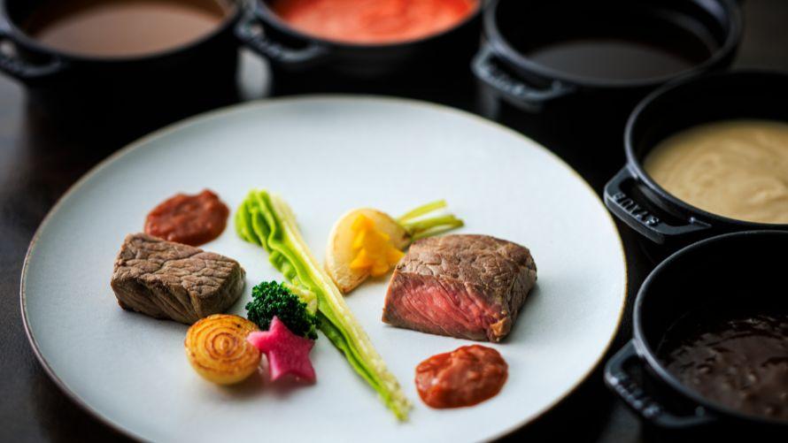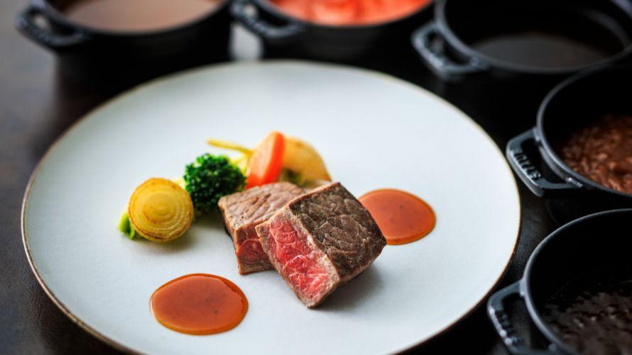ボリューミーで味わい深い牛肉を3種のソースを添えてご提供いたします。