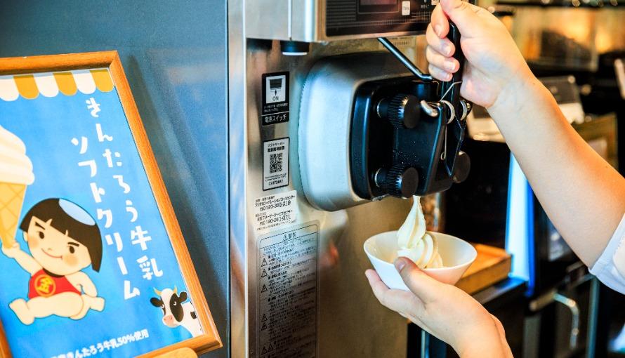 足柄地区にゆかりのあるきんたろうをデザインした牛乳で、かながわ酪農活性化対策委員会が認証する「かながわ県産生乳100%認証」を取得している地元神奈川の牛乳を使用したソフトクリームです。