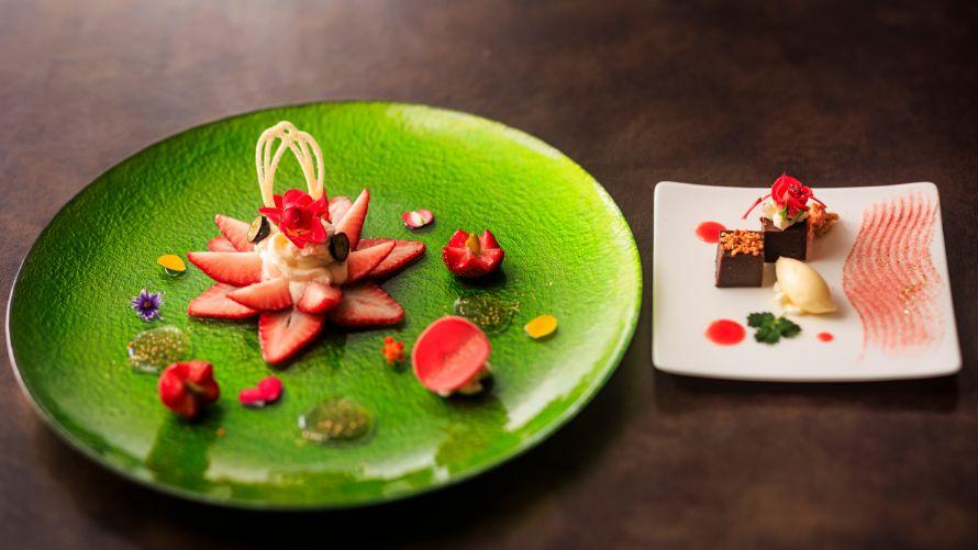 シェフの個性が光るシグネチャーコース。フランベによる炎の演出で極まる至高の旅。