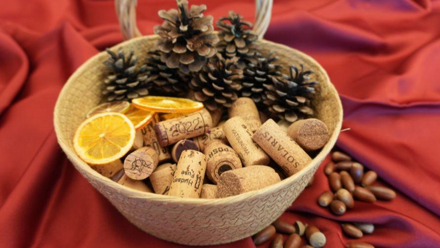 レストランでワインをお楽しみいただいたあとのコルクを再利用し、作っていただくクリスマスリース作り体験。
