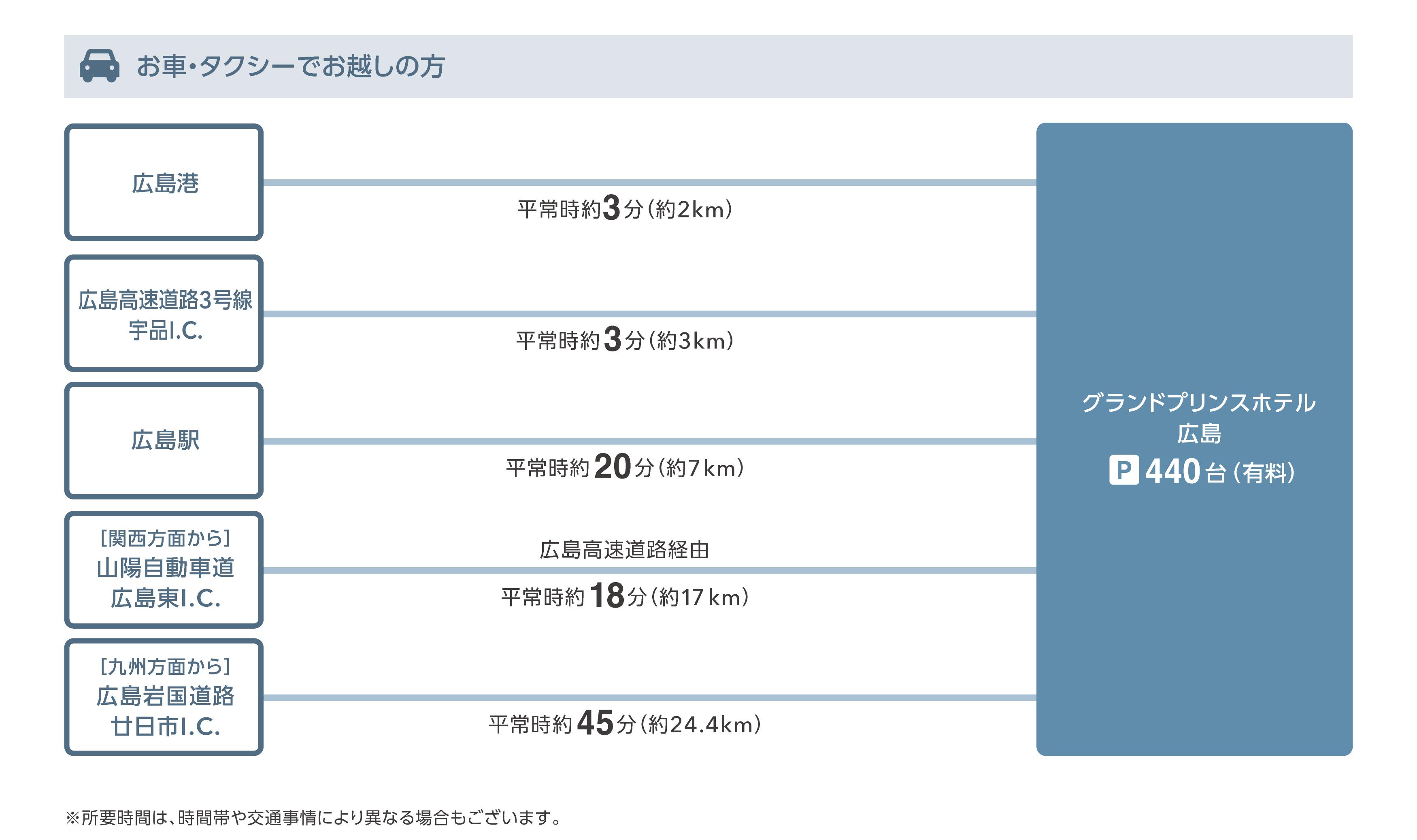 ホテルから広島駅、広島駅からホテルへの手荷物配送も可能ですので、広島市内での手ぶら観光にぜひご利用ください。 - お車・タクシーでお越しの場合は