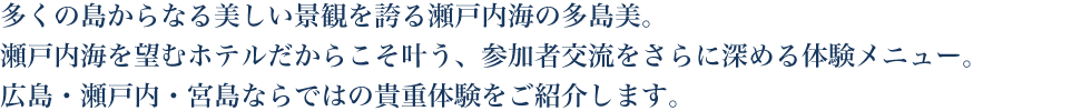 広島・瀬戸内・宮島は、海の幸、山の幸が豊富であり、四季を通じて広島の味覚を楽しむことができます。