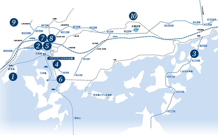 宮島へはホテル前から高速船で26分のダイレクトアクセス。