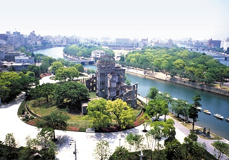 世界的に認められた国際平和文化都市・広島。原爆ドーム、記念碑、資料館が美しい緑と川に囲まれ、