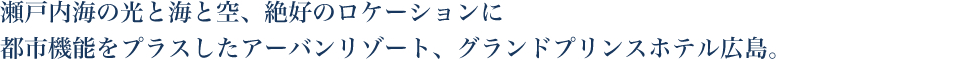 広島の海の玄関、瀬戸内海の島々を抱く広島湾の元宇品公園の隣に建つグランドプリンスホテル広島は、