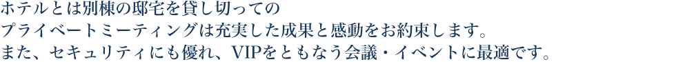 専用エントランス、ロビー、ホワイエを設けた貸切邸宅。