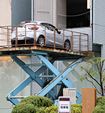リフトサイズ:縦5,360mm×横2,100mm 昇降に必要な時間:約2分最大積載量:3,500kg 間口サイズ:縦2,100mm×横2,100mm