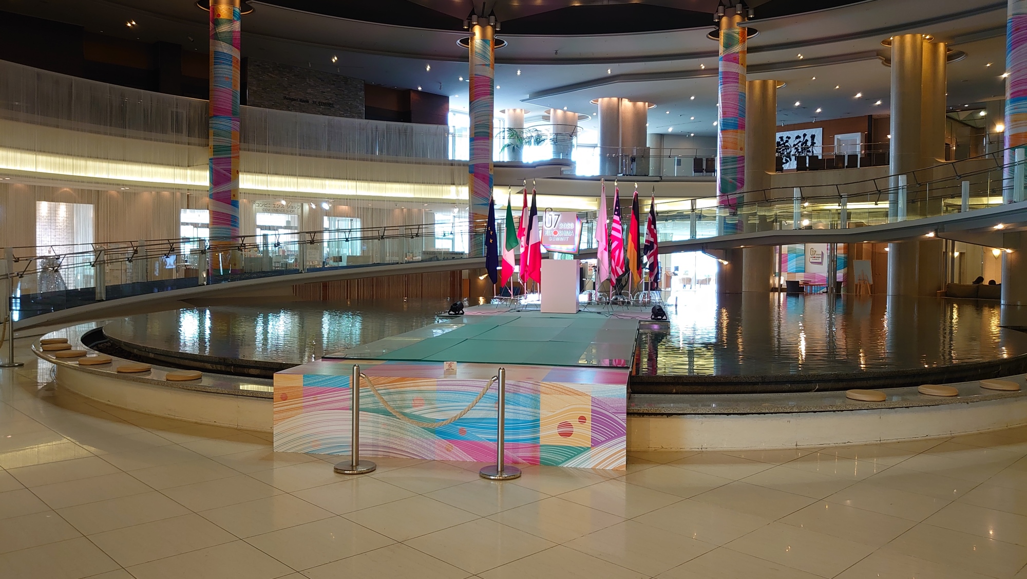ホテル敷地内には各国首脳の集合写真撮影場所やG7広島サミットのロゴデザインに使われている「7色の折り紙」をイメージした華やかなデザインが各所に設置されています。
