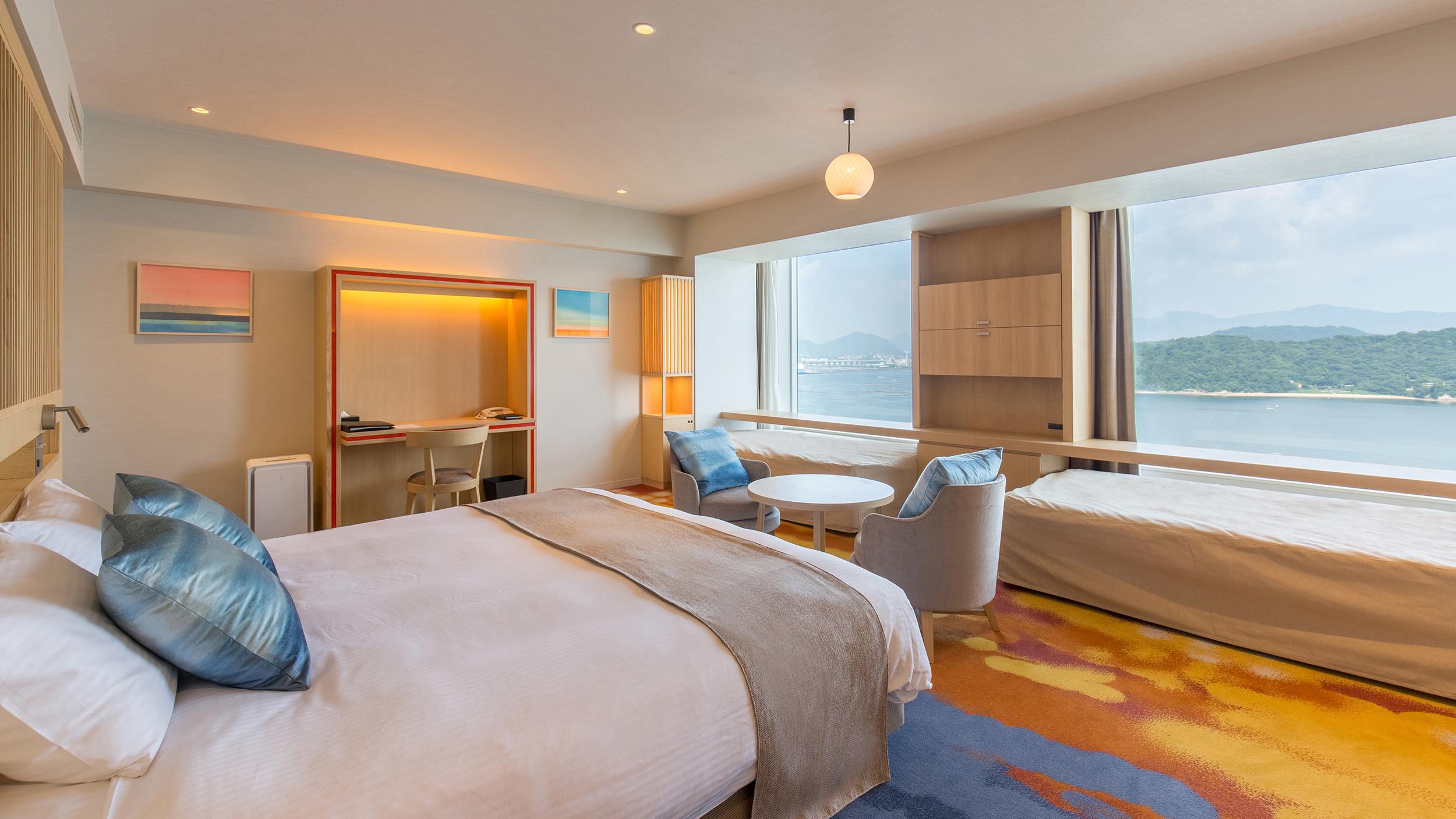 さらに、海側客室確約の特典付き。瀬戸内海を眺めるお部屋で上質なホテルステイをお楽しみください。