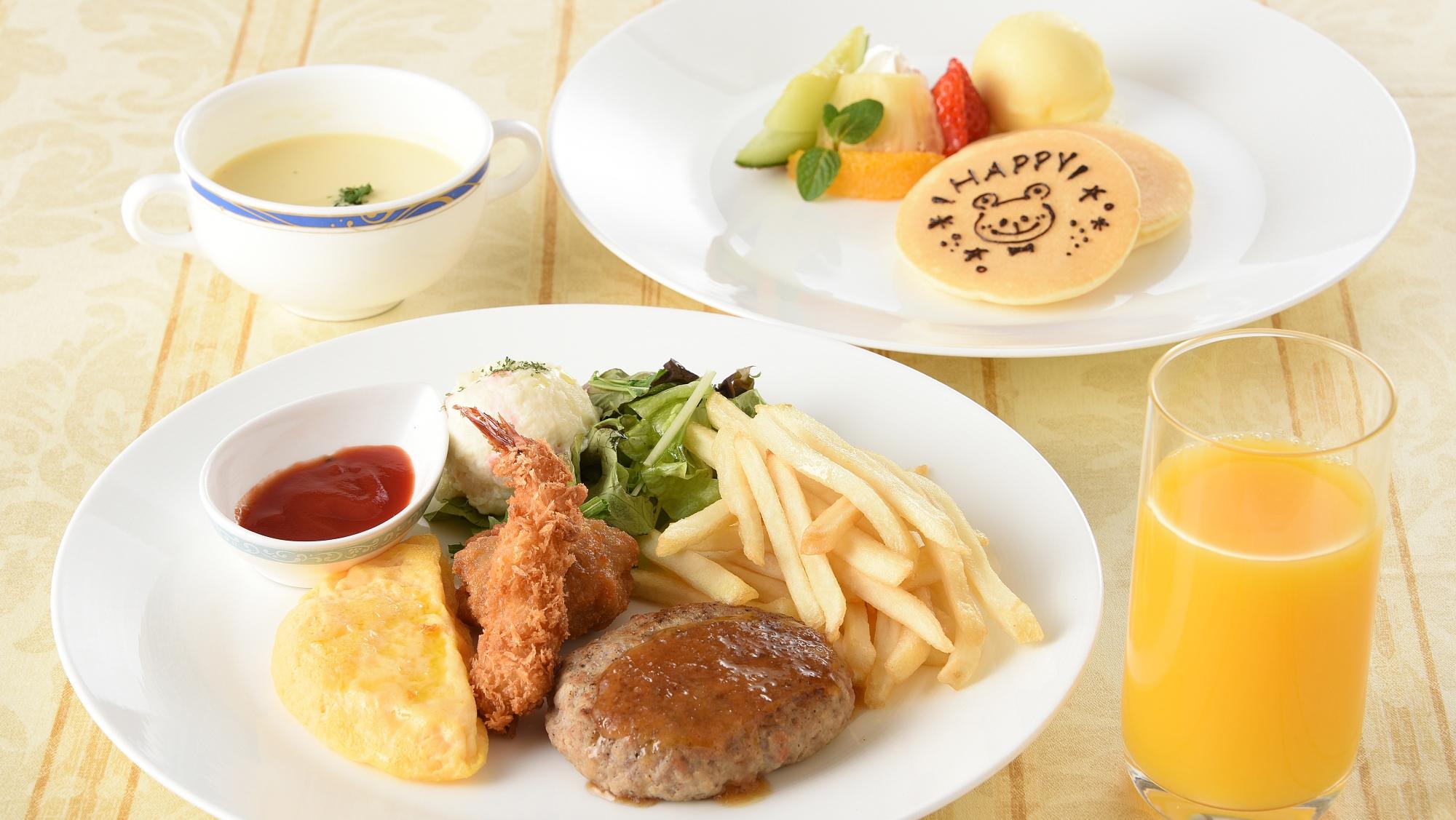 (ハンバーグ、エビフライ、ポテトサラダ、オムレツ、鶏の唐揚げ、フライドポテト)