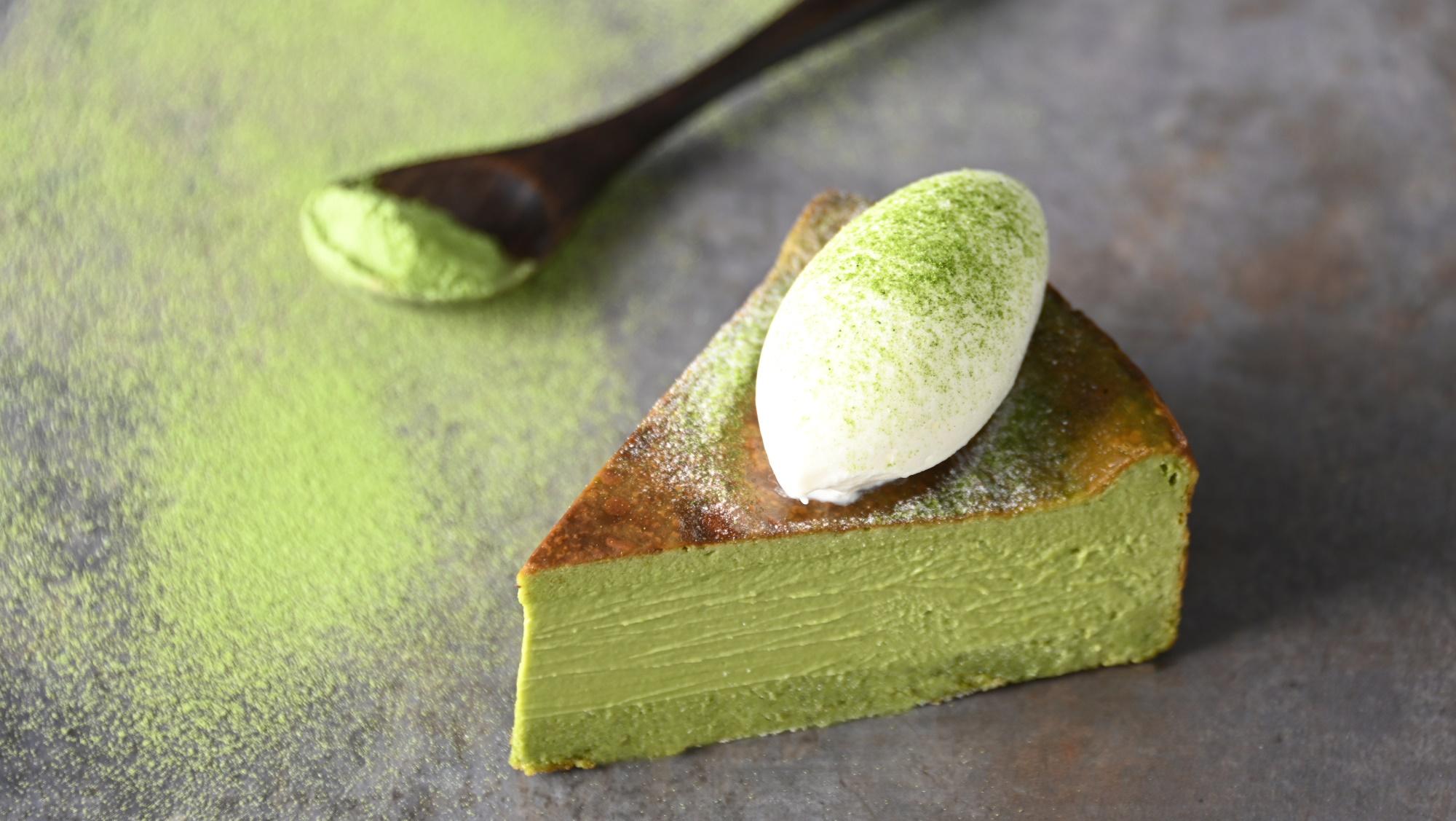 チーズと抹茶の香りが互いに引き立て合う、とろけるようなくちどけのチーズケーキ。